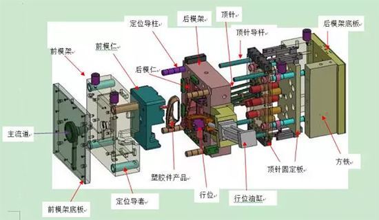 最后是頂出機構。模具注塑好后的塑料件基本上留在型芯上,這時候就需要頂出機構來頂出塑料件。頂出機構通常是頂針,頂板或者頂塊之類的。